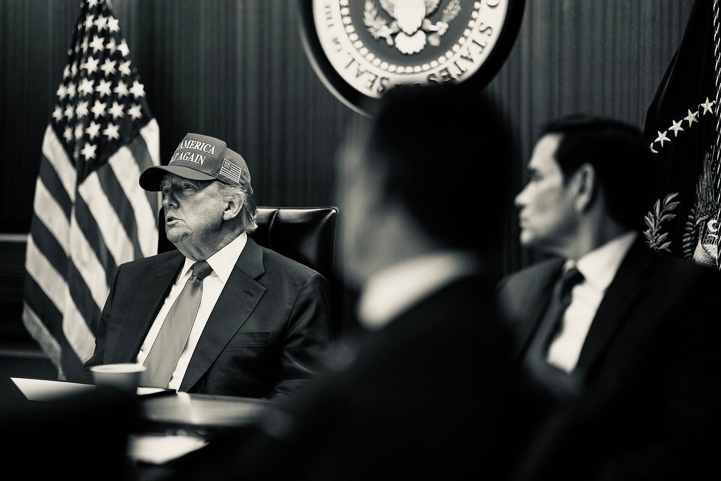 However imperfect, there are no John Kellys and Jim Mattises around the president today. Whatever limited guardrails that existed are gone. In their place is a court of loyalists telling the president what he wants to hear, a group of shit-posting social media jesters hyping him up by making the war feel like a dopamine-fueled video game, and weirdly, cabinet secretaries who won’t even tell him “no” when he insists they wear the same shoes that he does, including when they’re the wrong size.