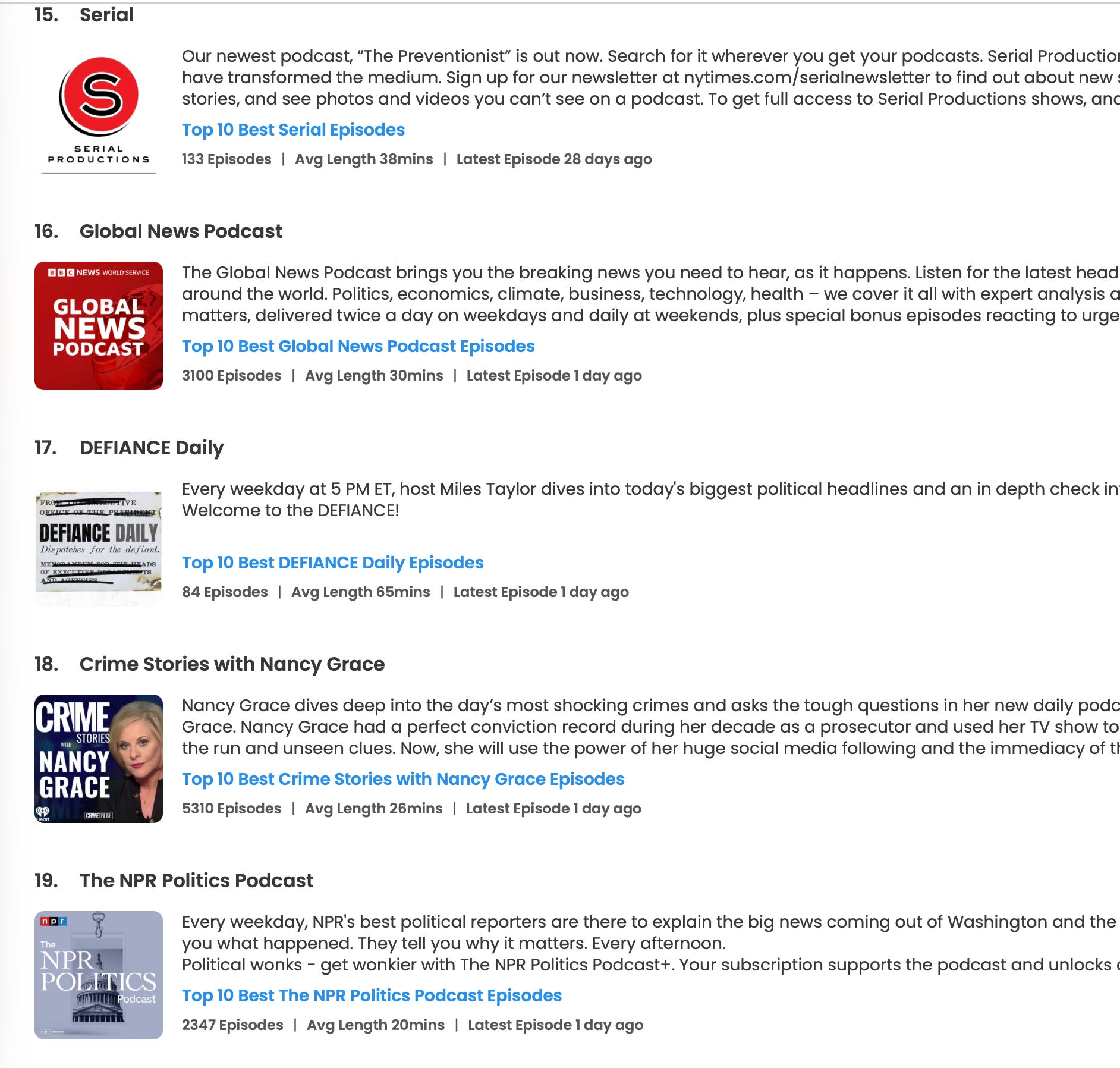 As of this week, Goodpods — which ranks all of the biggest podcasts in the world by listens, ratings, comments, subscriptions, and shares from millions of shows on its platform — ranked DEFIANCE Daily #17 in Best News Podcasts in this month’s rankings. That puts us alongside Serial, the BBC’s Global News Podcast, and NPR Politics.